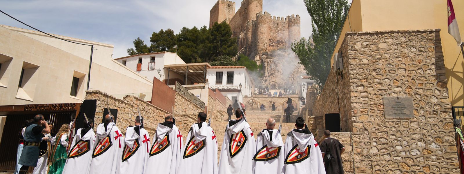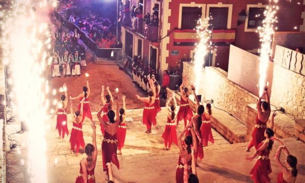Por un lado están los actos organizados por la Junta Festera de Calles, que mantienen una línea tradicional con calles engalanadas, encuentros de gachamigueros, concursos de charangas y su gran desfile festero. Por otro la Agrupación de Comparsas de Moros y Cristianos, que deleita a los espectadores con sus impactantes entradas que finalizan con las capitanías , de las que cada año se encarga una comparsa. El acto más impactante es la Embajada mora nocturna que en el bello marco de la plaza santa maría escenifican lo que en su día fue la toma del castillo .
